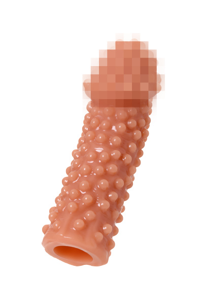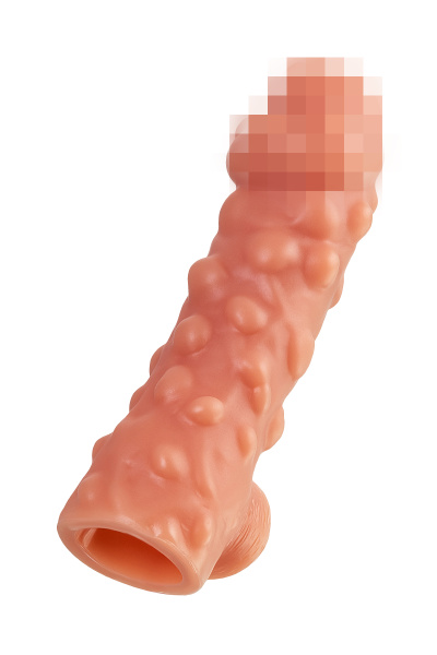 Насадка KOKOS реалистичная с дополнительной стимуляцией, TPE, телесная, 15.6 см с крупными пупырышками