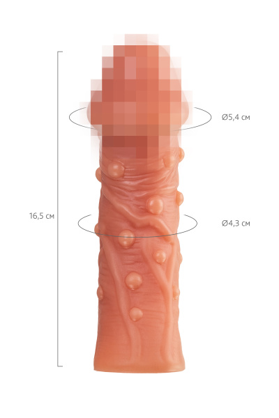 Насадка KOKOS реалистичная с дополнительной стимуляцией, TPE,телесная, 16,5 см, Ø 5 с пупырышками
