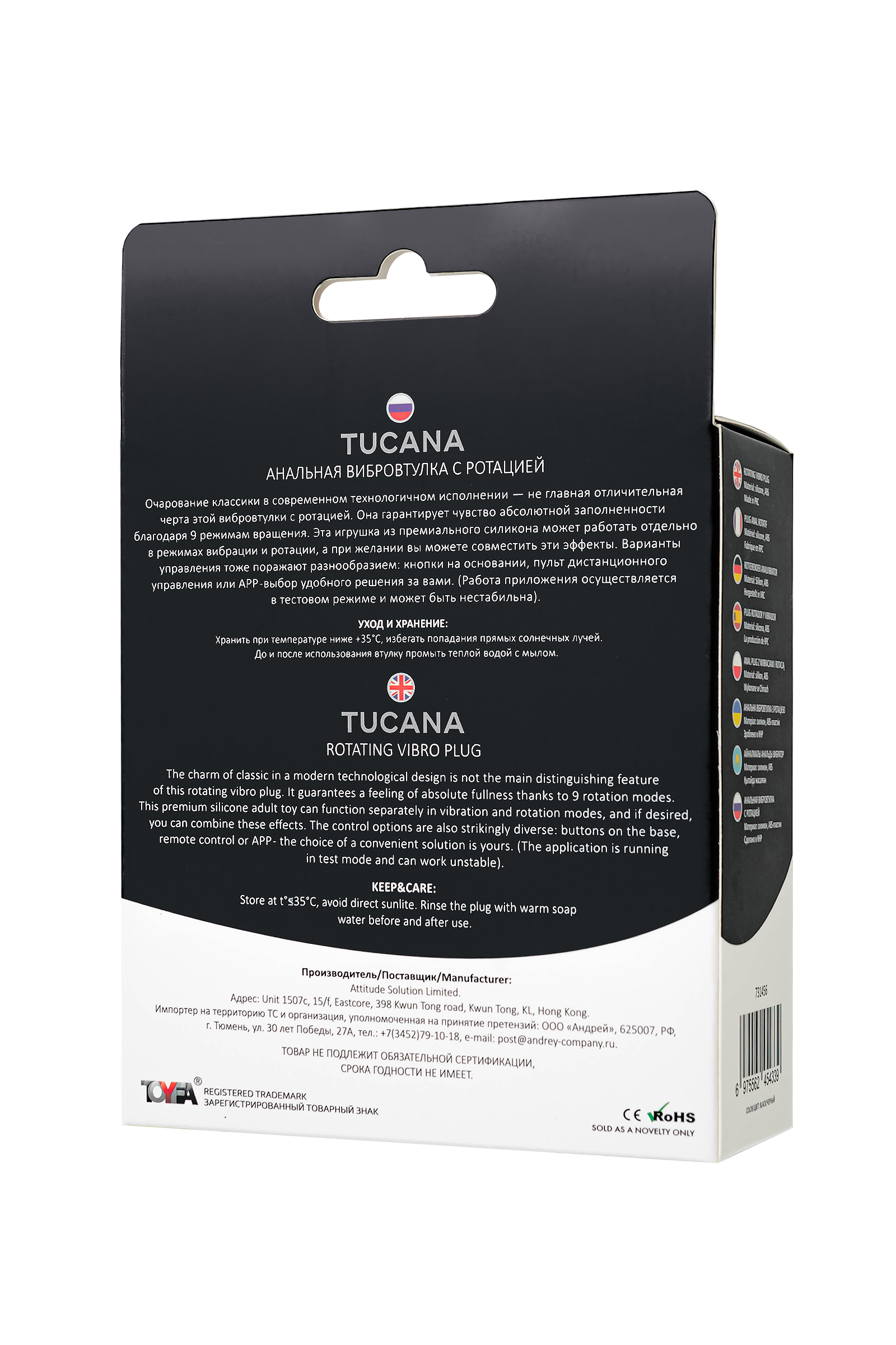 Вибровтулка с ротацией Tucana от Popo — это идеальное сочетание элегантности и инноваций, воплощенное в классической черной модели с уникальной текстурой. Поверхность игрушки украшена рельефом в виде многочисленных волн, что обеспечивает дополнительную стимуляцию и тактильное удовольствие при использовании. Изготовленная из премиального силикона, эта втулка приятна на ощупь, комфортна в использовании и полностью безопасна для тела. Игрушка создана для тех, кто хочет разнообразить интимные моменты и усилить ощущения. Благодаря 9 режимам ротации и вибрации, вы можете настроить её под свои предпочтения, а ротационные движения обеспечивают насыщенное чувство заполненности. Размеры и конструкция: Рабочая длина: 10 см — идеальная для комфортного и глубокого проникновения. Диаметр: 3,8 см, обеспечивающий баланс между комфортом и стимуляцией. Общая длина: 12 см. Наличие стоппера: важный элемент, который предотвращает слишком глубокое проникновение и делает использование безопасным. Кнопки включения и переключения режимов находятся в основании стоппера, что делает управление простым и удобным. Вы также можете передать управление партнеру через пульт дистанционного управления или с помощью приложения, что добавляет элемент игры и новых ощущений. Это делает игрушку идеальной для парных игр и создания непредсказуемых сценариев. Игрушка поддерживает перспективную функцию управления через Bluetooth, позволяя вам расширить границы возможностей. Приложение открывает доступ к дистанционному контролю, создавая новые сценарии интимных игр. Работа приложения осуществляется в тестовом режиме и может быть нестабильна. Приложение предлагает уникальный способ передать контроль своему партнеру, даже если вы находитесь на расстоянии. Tucana станет идеальной для тех, кто хочет испытать новые ощущения от анальной стимуляции, вне зависимости от опыта. Удобные размеры и наличие стоппера делают ее безопасной и комфортной для использования как новичками, так и опытными пользователями. Откройте новые грани удовольствия с Tucana от Popo — вибровтулкой, которая сочетает в себе технологичность, удобство и изысканный дизайн для максимального наслаждения. Основные характеристики: Режимы: 9 режимов ротации и 9 режимов вибрации для разнообразных ощущений. Цвет: элегантный черный с рельефной текстурой волн. Материал: премиальный силикон и ABS-пластик, гипоаллергенные и безопасные. Водонепроницаемость: IPX6 — подходит для использования в душе, защищена от сильных струй воды. Управление: кнопки на основании, пульт дистанционного управления или через приложение. Зарядка: магнитная, время зарядки — 2,5 часа. Время работы: до 50 минут.