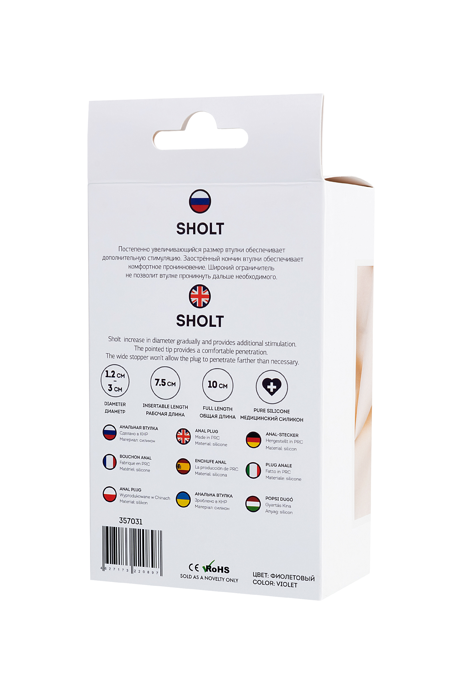 Sholt Постепенно увеличивающийся размер втулки обеспечивает дополнительную стимуляцию. Заострённый кончик втулки обеспечивает комфортное проникновение. Широкий ограничитель не позволит втулке проникнуть дальше необходимого. Рекомендуем использовать до и после применения - дезинфицирующее средство для игрушки, чтобы обеспечить длительное скольжение и комфорт интимных отношений, рекомендуем использовать анальную смазку на водной основе. Хранить при температуре не выше 35 градусов, избегать попадания прямых солнечных лучей.