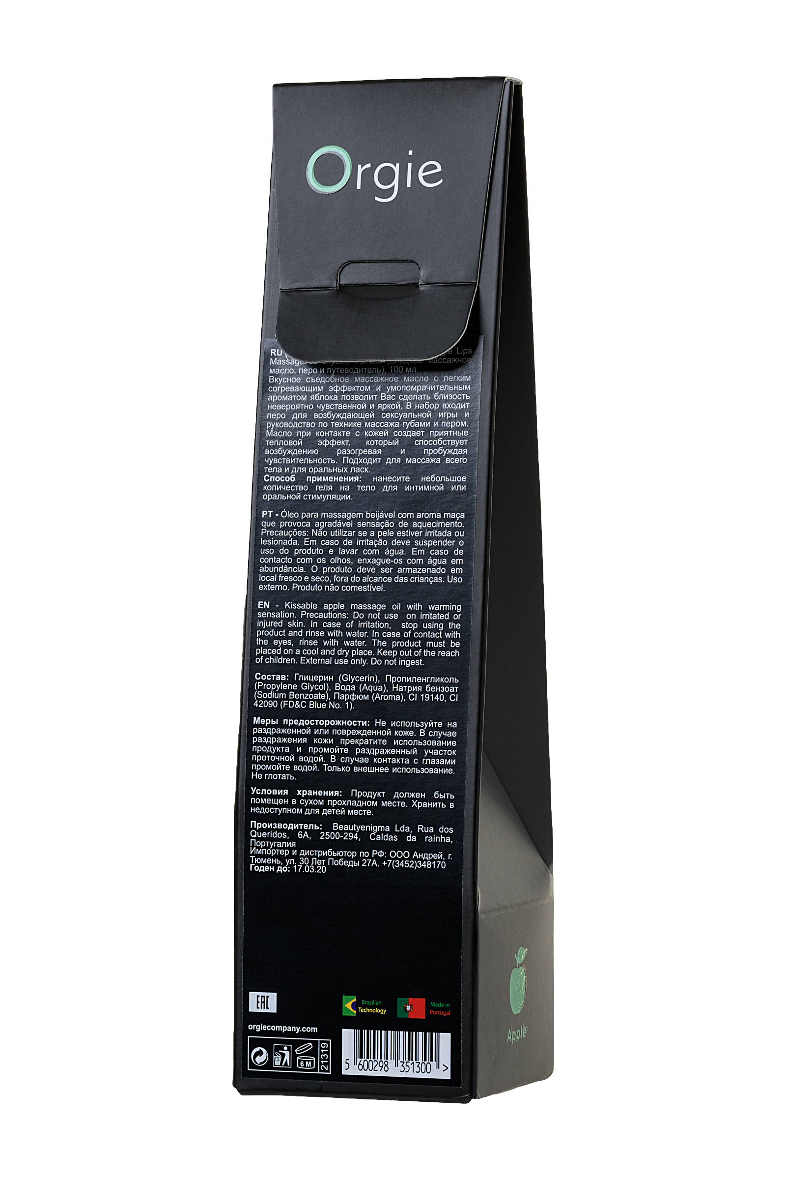Вкусное съедобное массажное масло с легким согревающим эффектом и умопомрачительным ароматом яблока от Орджи позволит Вас сделать близость невероятно чувственной и яркой. В набор входит перо для возбуждающей сексуальной игры и руководство по технике массажа губами и пером. Масло при контакте с кожей создает приятные тепловой эффект, который способствует возбуждению разогревая и пробуждая чувствительность. Подходит для массажа всего тела и для оральных ласк.Способ применения: нанесите небольшое количество геля на тело для интимной или оральной стимуляции.