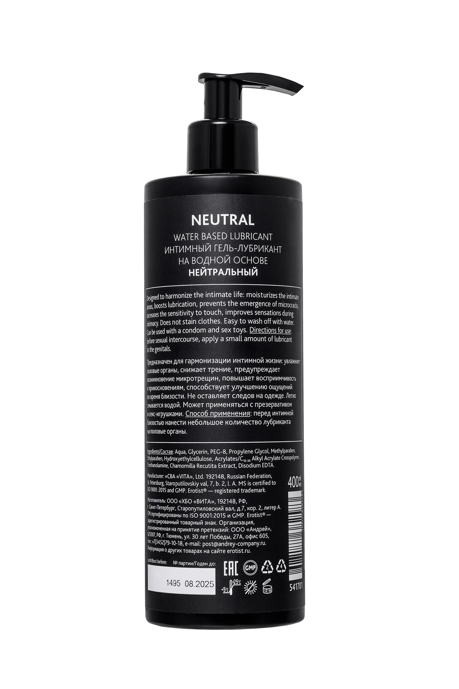 Лубрикант на водной основе NEUTRAL. Erotist Lubricants 100 мл