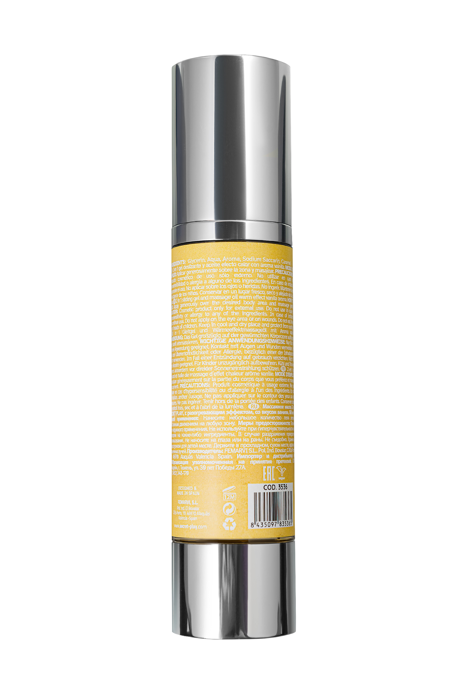 Vanilla Hot Effect — это массажное масло 2 в 1 от испанского бренда Secret Play, которое откроет для вас новые грани наслаждения. Его разогревающий эффект и чувственный вкус ванили созданы, чтобы превратить ваши интимные моменты в страстное и незабываемое путешествие. Это универсальное средство добавит тепла и нежности к любым ласкам, идеально подходя для чувственного массажа, оральных игр и прелюдий, которые плавно переходят к проникновению. Масло делает прикосновения невероятно мягкими и приятными, его текстура буквально тает на коже, создавая ощущение легкого тепла, которое усиливает возбуждение и пробуждает чувственность. Попробуйте нанести его на шейку, нежно пройдитесь по ключицам, остановитесь на сосках — и наслаждайтесь тем, как каждый поцелуй и прикосновение становятся более насыщенными и горячими. Его ванильный аромат и вкус наполняют атмосферу сладким предвкушением и создают волнующее настроение, помогая расслабиться и настроиться на волну удовольствия. Vanilla Hot Effect — это больше, чем просто массажное масло: это средство для создания близости и интимности, которое идеально подходит для массажа, прелюдий и оральных ласк. Позвольте его нежному теплу и сладкому аромату ванили разогреть ваши чувства и настроить на волну страсти Вкус: ваниль Глицериновая основа Используется как массажное масло и смазка Объем: 50 мл Без сахара и глютена, подходит для веганов Универсальное использование на всех эрогенных зонах НЕ совместимо с презервативами и секс-игрушками Состав: Глицерин, вода, ароматизатор, сахарин натрия, карамель. Способ применения: Обильно нанесите масло на желаемый участок тела и аккуратно помассируйте. Используйте для массажа, прелюдии и оральных ласк, позволяя ванильному аромату и вкусу создать атмосферу чувственности. Меры предосторожности: Не использовать при повышенной чувствительности или аллергии на ингредиенты При раздражении прекратить использование Не наносить на область глаз или открытые раны Не глотать Хранить в недоступном для детей месте, вдали от солнечных лучей
