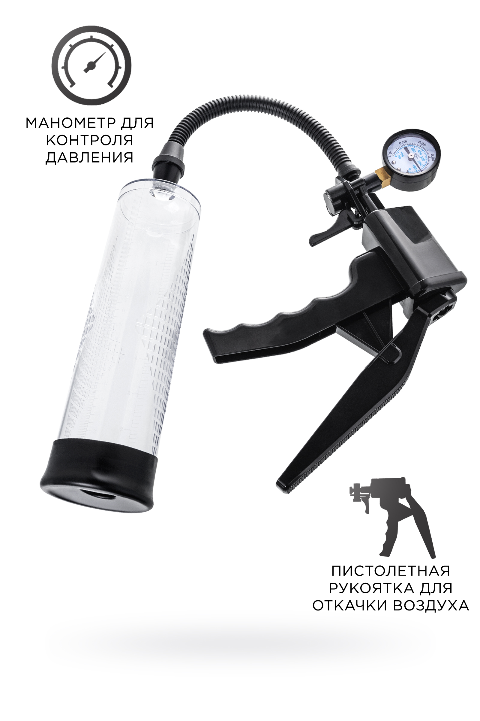 Гарант сексуального могущества для мужчины не только крепкая и надежная эрекция, но и внушительный размер орудия. Для тех, кто стремится достичь впечатляющих результатов в области увеличения размеров пениса, рекомендуется механическая помпа Viggo от Sexus® Men. С помпой Viggo серии Sexus® Men Training легко управлять своими тренировками по пенбилдингу, усиливать эрекцию и получать новые ощущения от полового акта. Для тренировки, а также чтобы подготовить себя к длительному и яркому сексу, вставьте свой пенис в колбу и откачайте воздух с помощью рычага с пистолетной рукояткой. Благодаря отрицательному давлению увеличивается приток крови к половому члену, за уровнем давления удобно следить с помощью встроенного манометра. Прозрачный ABS-пластик позволяет наблюдать как пенис набирает силу и увеличивается в размере. Отслеживайте результаты прямо в процессе с помощью измерительной шкалы. Для достижения ощутимых результатов рекомендуются систематические занятия по программе эффективного тренинга, которая входит в комплект. Регулярное использование вакуумной помпы Viggo от Sexus® Men позволяет: последовательно увеличить длину и диаметр полового члена, делая его более внушительным, сделать эрекцию более стабильной, крепкой и продолжительной, повысить сексуальную выносливость и половое влечение,поднять уверенность в своих возможностях и совершать новые сексуальные подвиги,понизить вероятность образований аномальных фиброзных тканей.Помпа Viggo комплектуется удобным большим рычагом с пистолетной рукояткой для разрежения воздуха, механическим манометром, клапаном для быстрого сброса давления и программой для эффективных тренировок. Гофрированный шланг, силиконовая насадка, качественные материалы – все вместе это делает использование помпы Viggo не только безопасным, но и комфортным!Рекомендуем использовать до и после применения - дезинфицирующее средство для игрушки, для более эффективного результата тренеровок рекомендуем использовать крем для увеличения или с лубрикантом на водной основе.