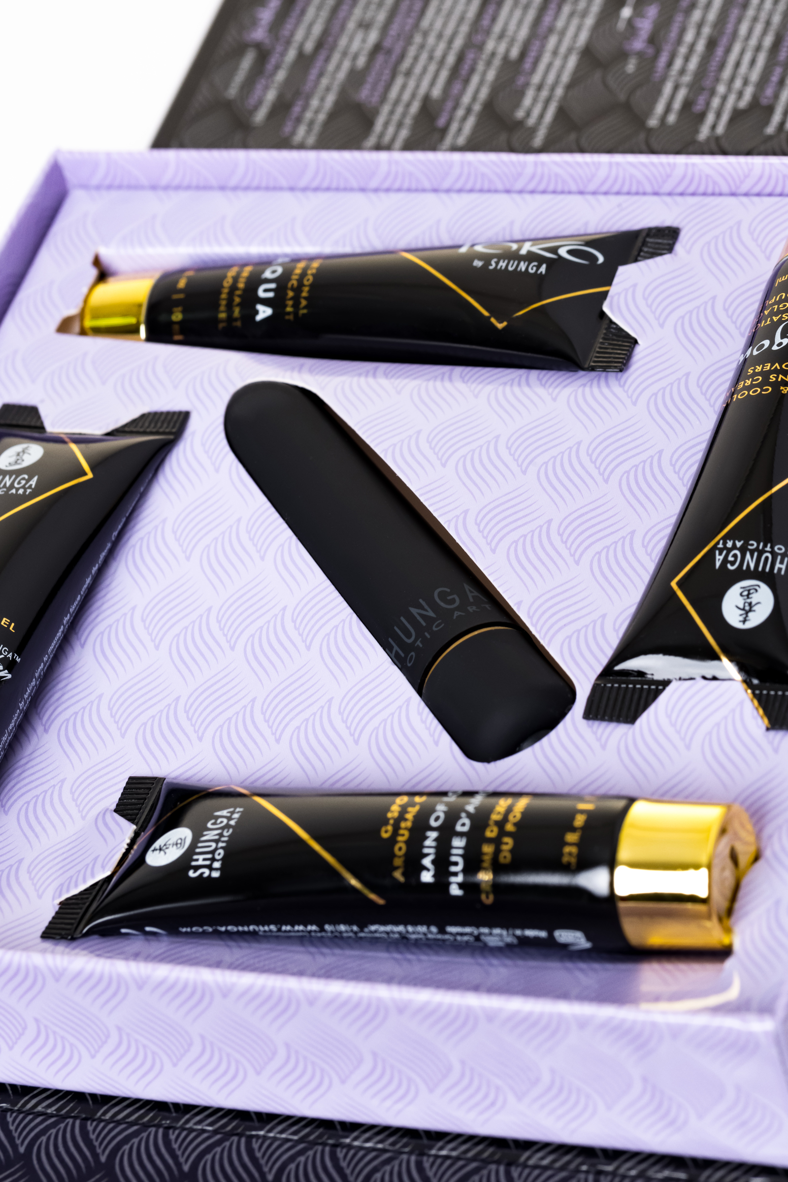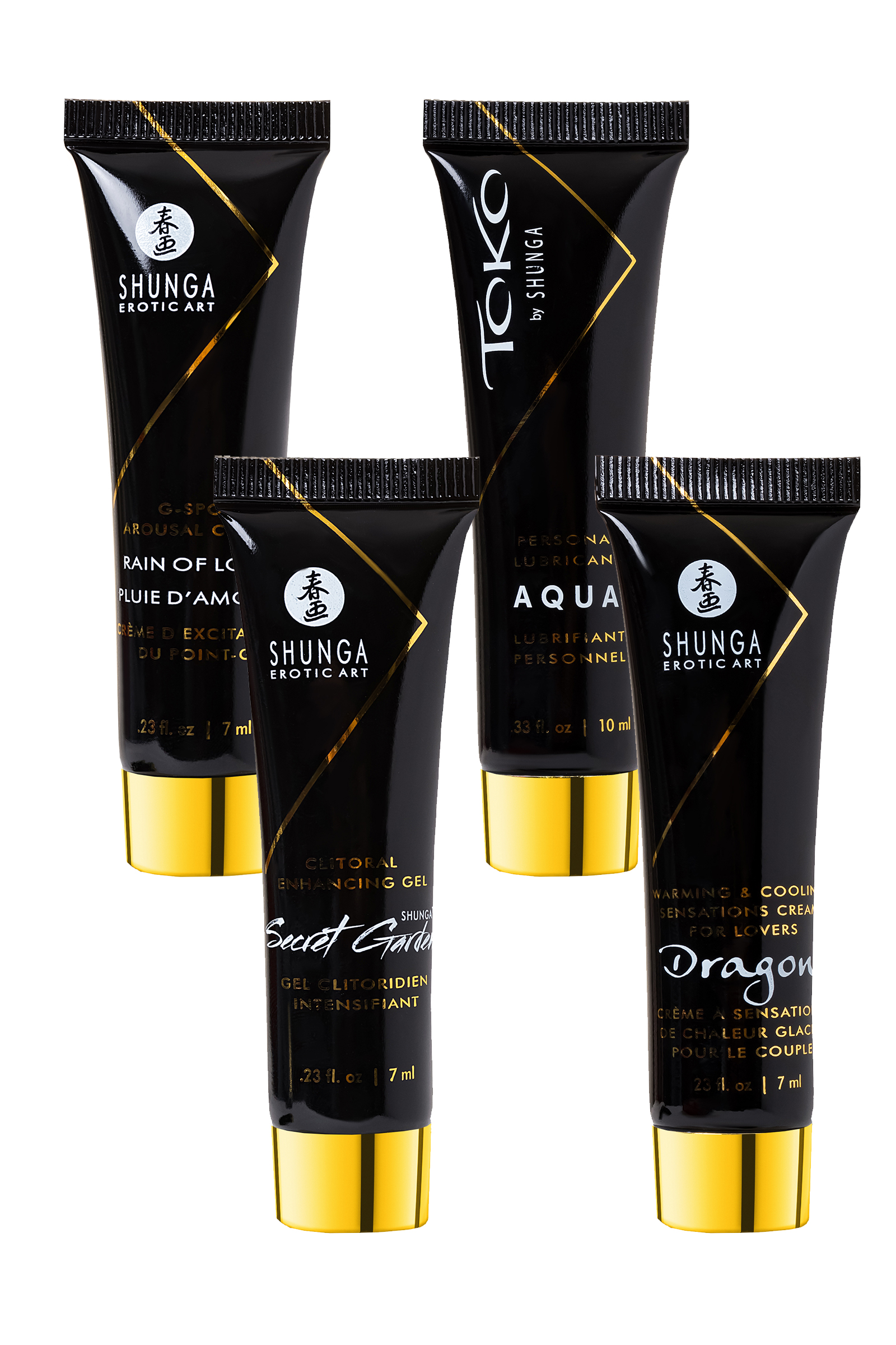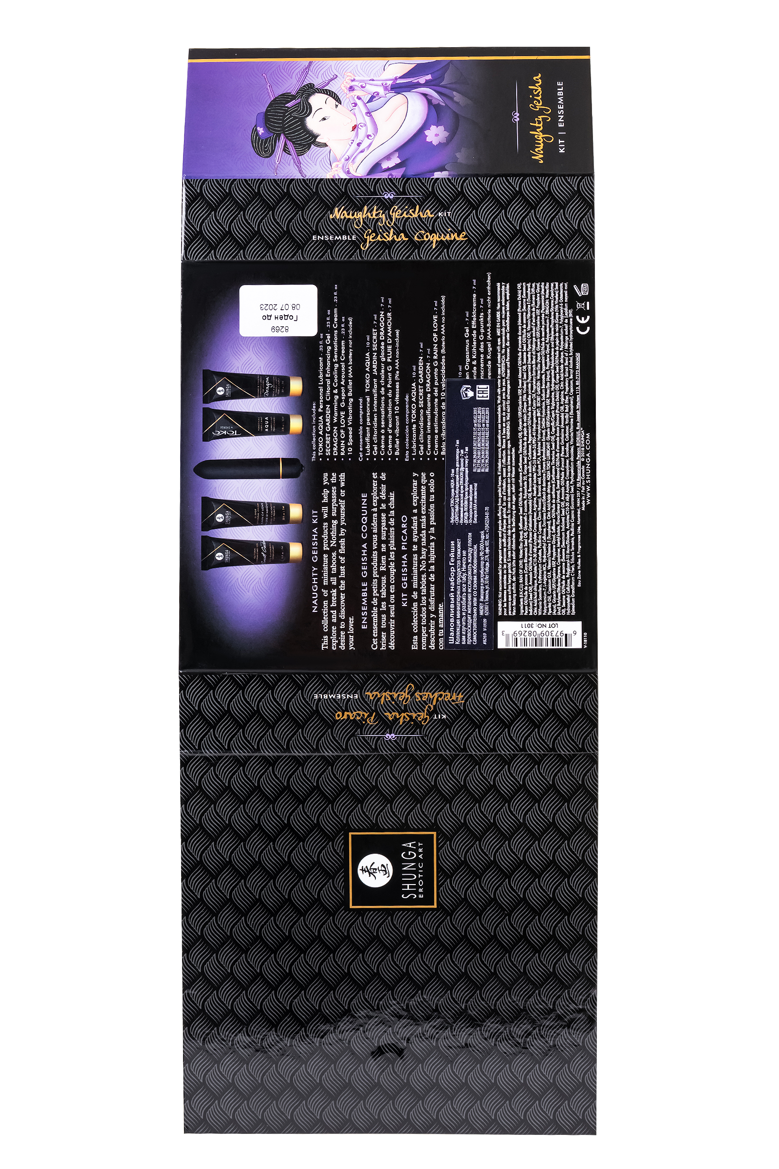 В набор входит:• Лубрикант на водной основе - 10 мл• Возбуждающий крем для женщин SECRET GARDEN (Тайный сад), 7 мл• Крем DRAGON (Дракон) - 7 мл• Крем для стимуляции точки G RAIN OF LOVE (Дождь любви), 7 мл• 10-скоростная вибропуля, (Батарейки ААА не входят в комплект)Коллекция миниатюрных продуктов поможет вам изучить и разбить все табу. Ничто так ни разжигает желания как интерес исследовать жажду вашего тела или жажду тела вашего любовника.Идеально подходит для вашей сексуальной жизни, в качестве подарка или прекрасного начала для исследования продукции Shunga.