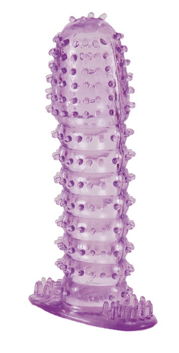 Насадка гелевая прозрачная, цвет фиолетовый с мягкими шипикам для стимуляции предверия влагалища и внутренней стимуляции, легко одевается используется со смазкой для лучшего скольжения. Длина 12 см, ширина/диаметр 4 см.Материал ПВХ