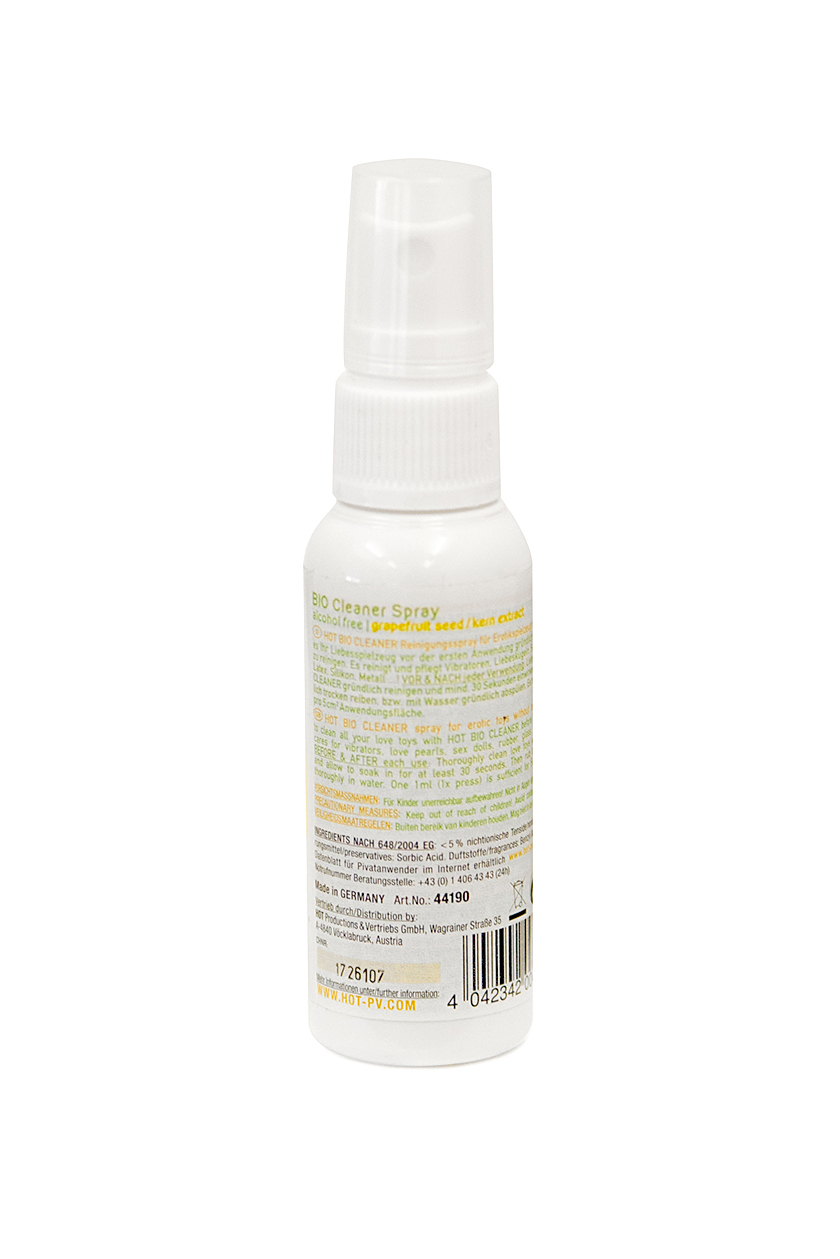 Очищающий спрей ХОТ Био Клинер. Органический, без агрессивных химических веществ био-спрей для ухода и гигиены за игрушками для взрослых. Уникальная формула основана на экстракте косточек грейпфрута. Совместим со всеми материала, с нейтральным ароматом.