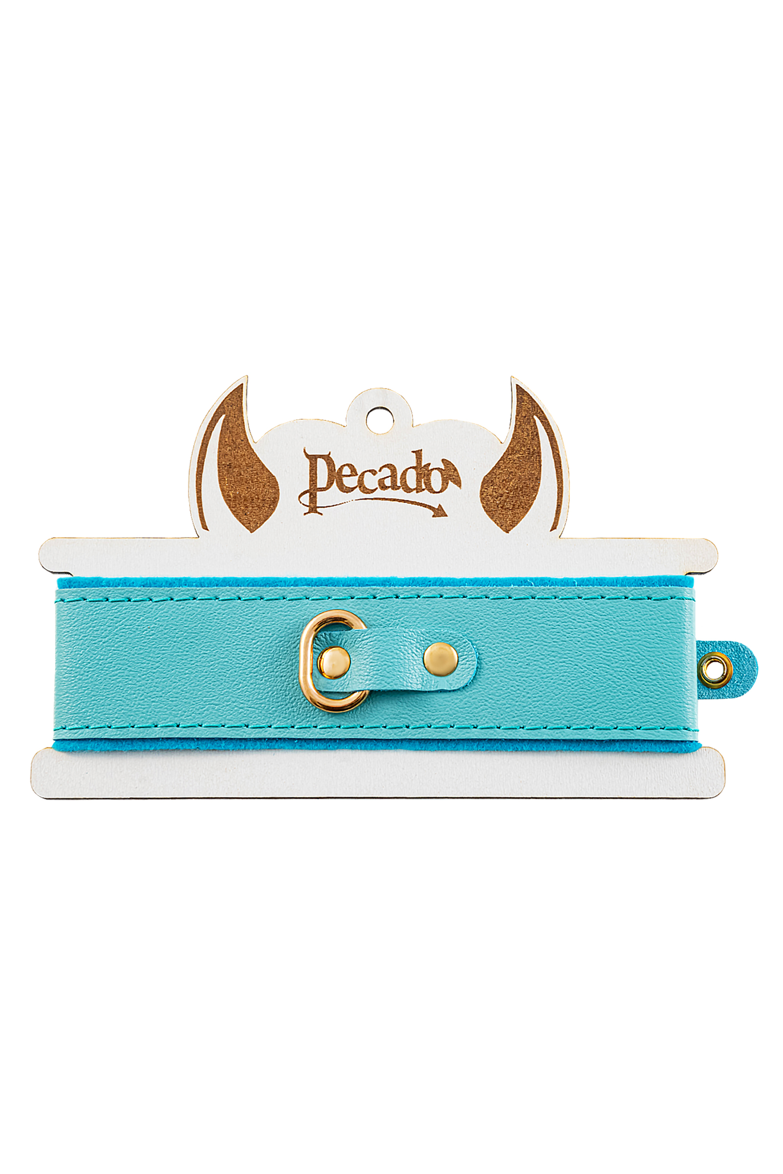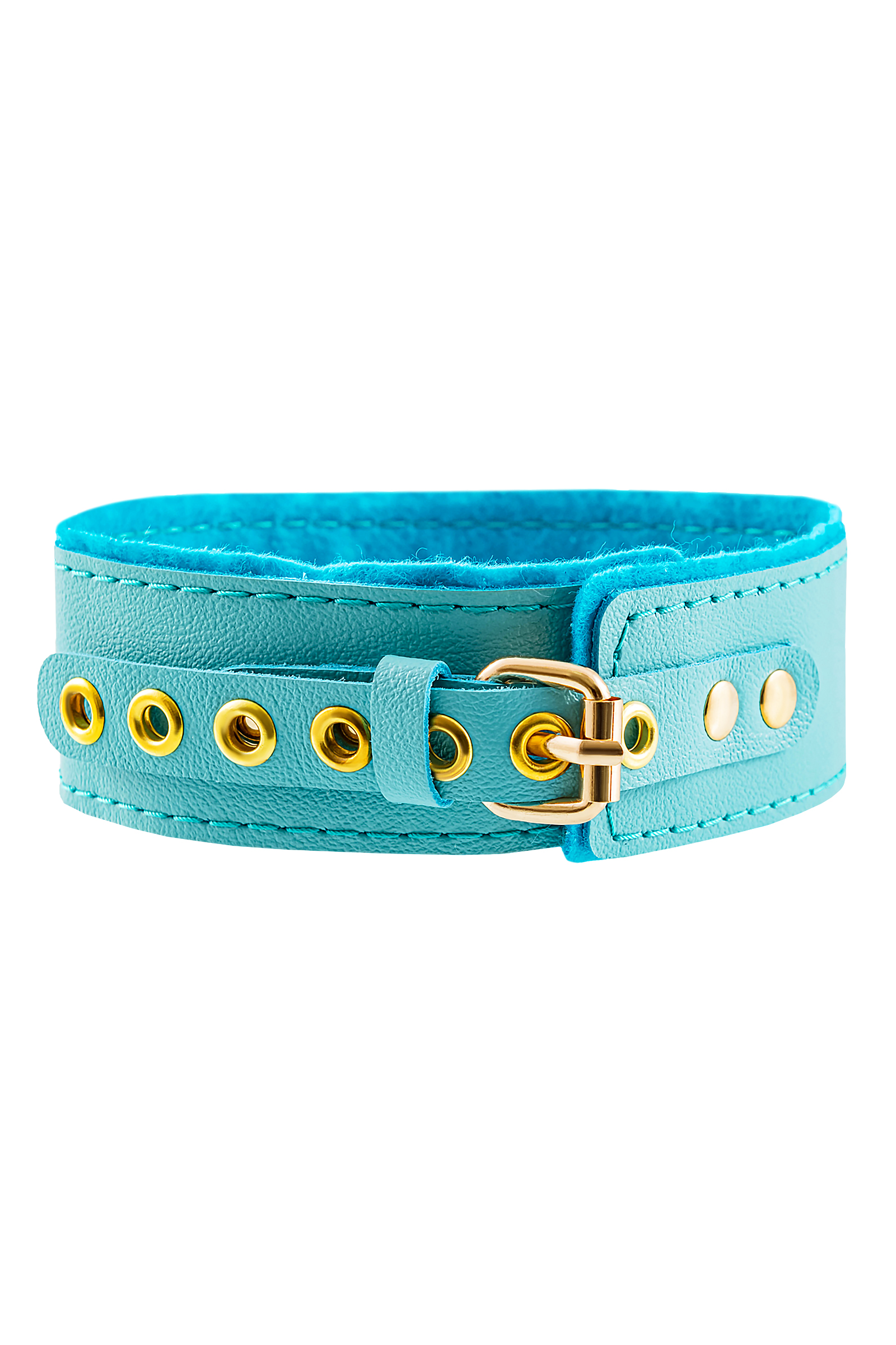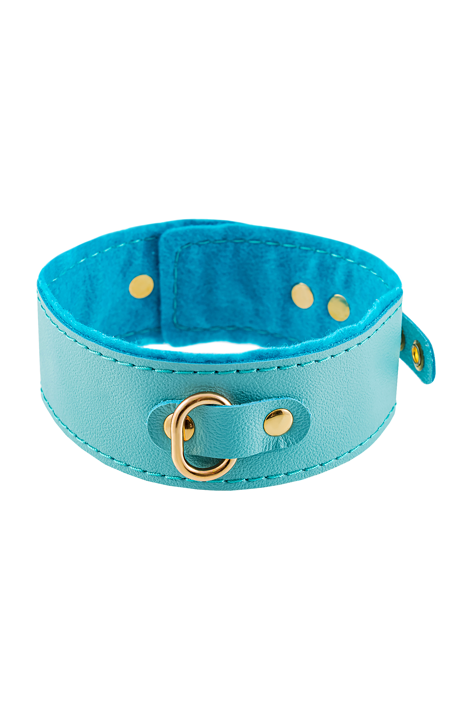Ошейник Pecado BDSM, двуслойный с подкладкой из фетра и прошивкой, натуральная кожа, голубой