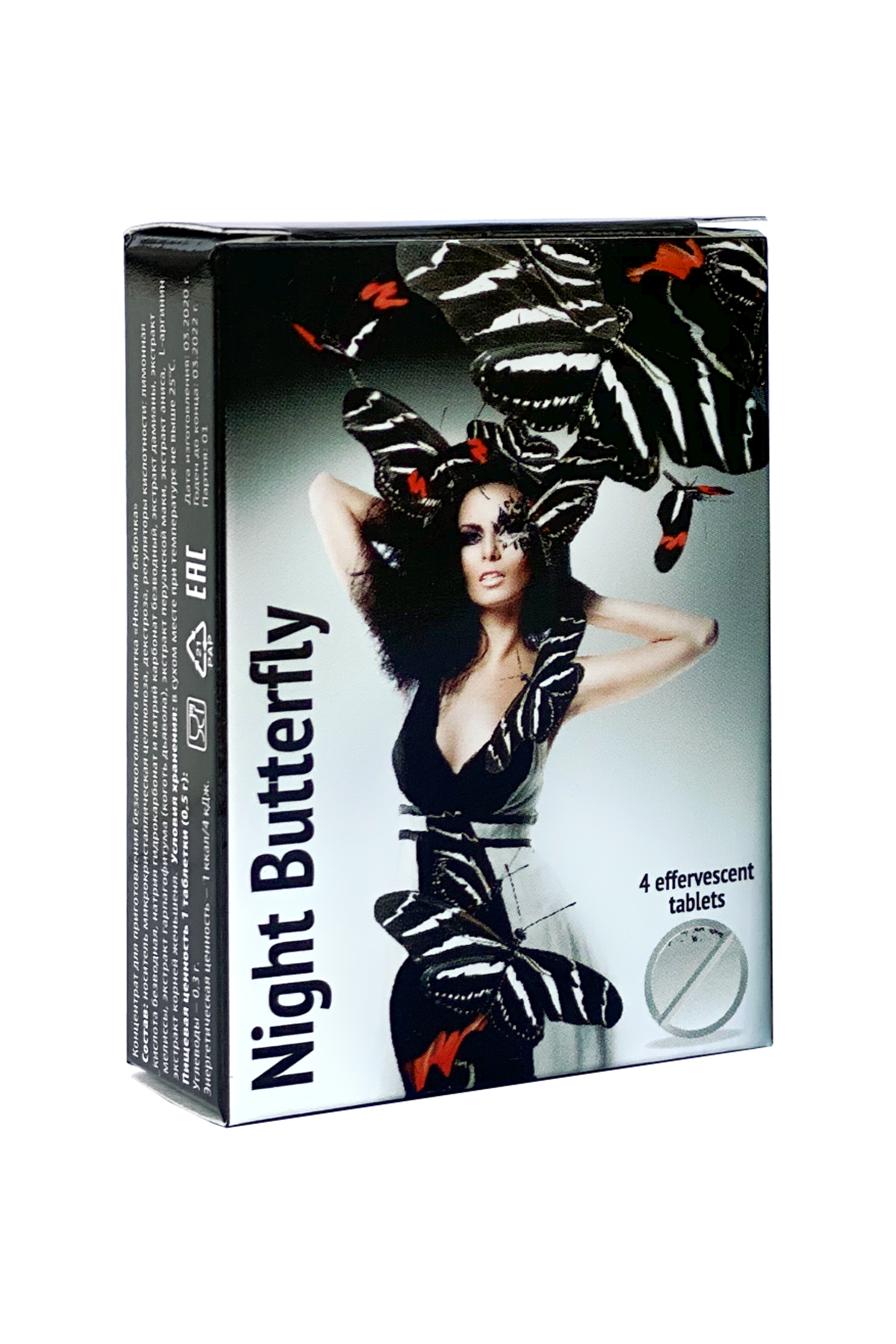 Быстрорастворимые шипучие возбуждающие таблетки «Ночная бабочка» помогут женщине раскрепоститься и без вреда для здоровья в полной мере испытать интимные радости ночи. В составе препарата экстракты растительного происхождения, направленные на достижение тонизирующего эффекта, при этом нормализуя кровоток и усиливая либидо. А афродизиаки усилят эффект изнутри, устаняя сексуальную холодность заменив ее на игривое, сексуальное настроение. Принимайте препарат, снимайте напряжение и настраивайтесь на ночь, полную желания и наслаждения! Способ применения: 1 таблетку растворить в 200 мл. воды. Взрослым употреблять 1 раз в день